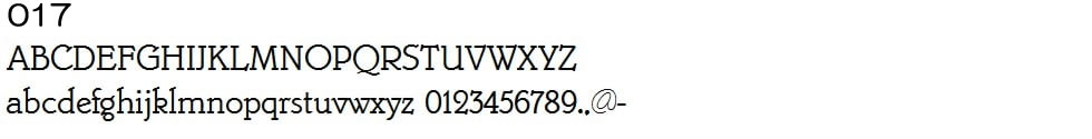※小文字や記号「.」「,」「@」「-」は書体によって用意されていないものもありますのでそれぞれサンプルをご確認下さい。