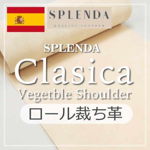 スプレンダ社はスペイン・バルセロナ近郊のイグアラダで1930年代から現在までベジタブルタンニン鞣し専門としてヌメ革だけを生産するタンナーで、本素材「Clasica(クラシカ)」は同社の看板レザーです。良質なEU圏の原皮のみを使いミモザとケブラチョを用いたタンニン剤で丁寧に鞣され、そのタッチはコシのあるヌメ革らしい仕上がりで表面には品のある淡い艶が見られ、使用時の艶増しや濃色変化などエイジングの美しさも評価されヨーロッパのトップメゾン各社で常用されています。
