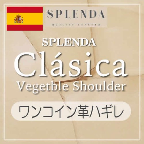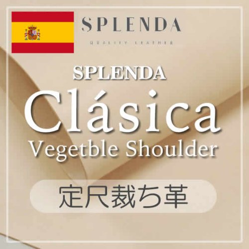スプレンダ社はスペイン・バルセロナ近郊のイグアラダで1930年代から現在までベジタブルタンニン鞣し専門としてヌメ革だけを生産するタンナーで、本素材「Clasica(クラシカ)」は同社の看板レザーです。良質なEU圏の原皮のみを使いミモザとケブラチョを用いたタンニン剤で丁寧に鞣され、そのタッチはコシのあるヌメ革らしい仕上がりで表面には品のある淡い艶が見られ、使用時の艶増しや濃色変化などエイジングの美しさも評価されヨーロッパのトップメゾン各社で常用されています。