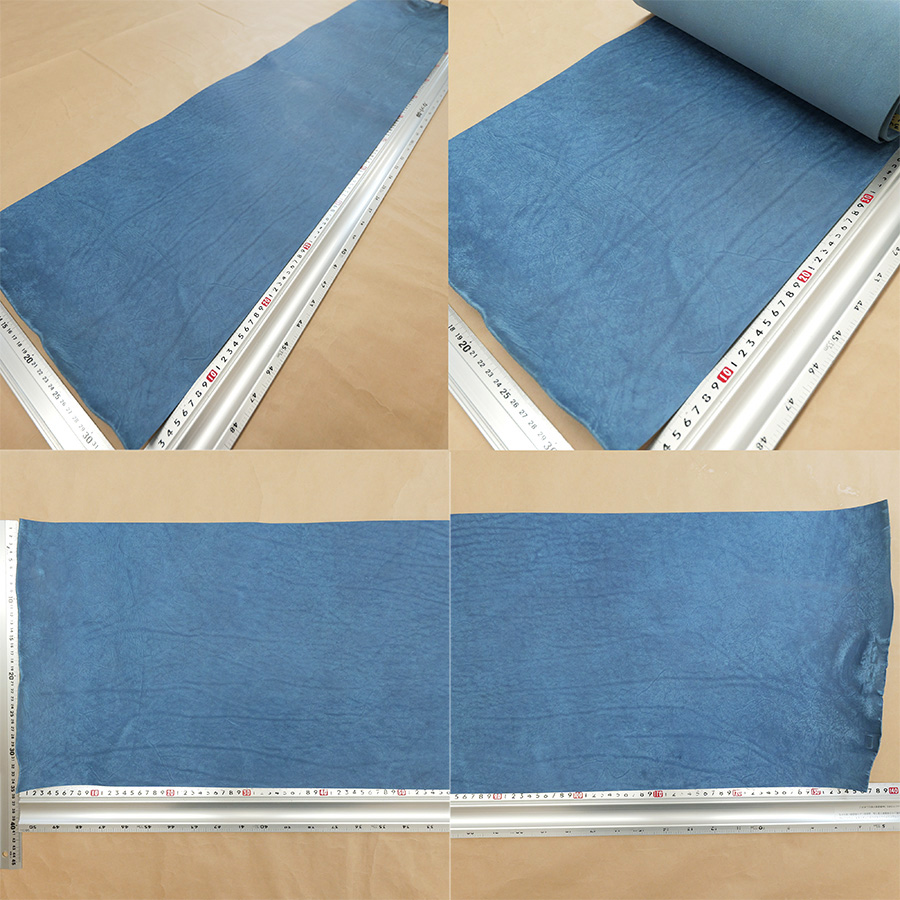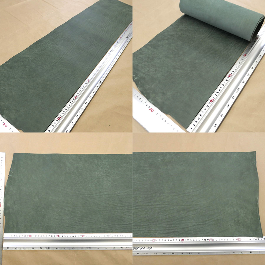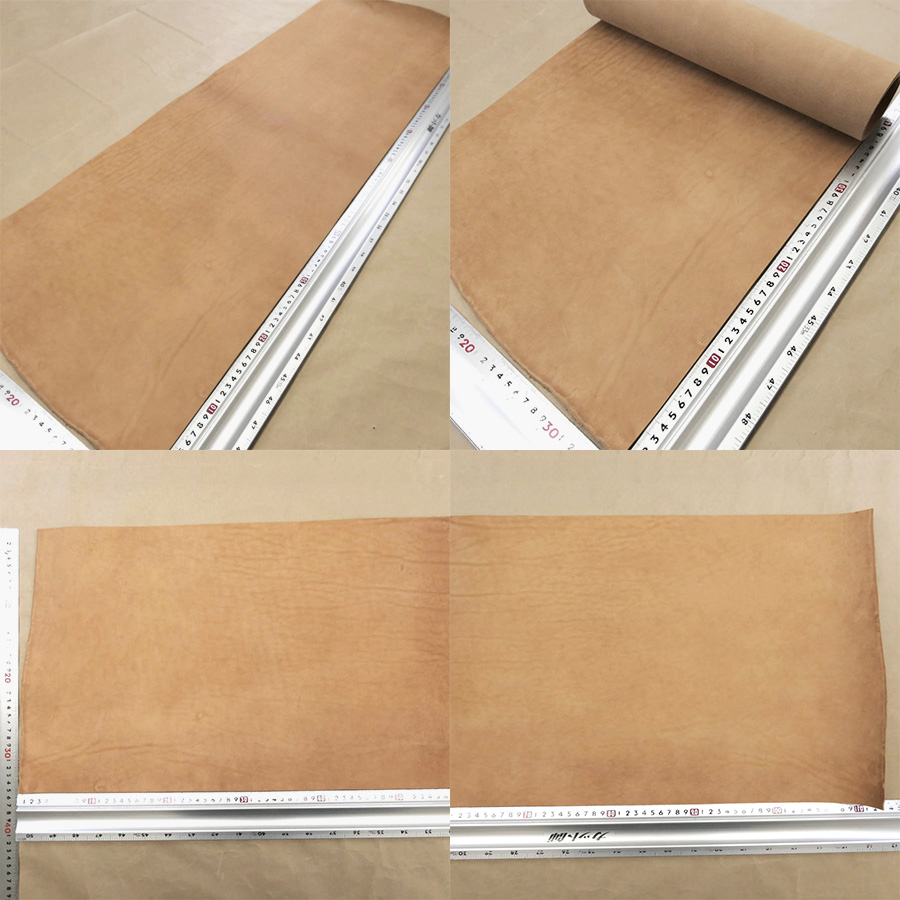 この商品は全判革から30-40cm程度の一定幅で切り出したもので、表示サイズは内包する長方形の縦横寸法ですが、計測は弊社で行っておりますので若干の寸法誤差はご容赦下さい。