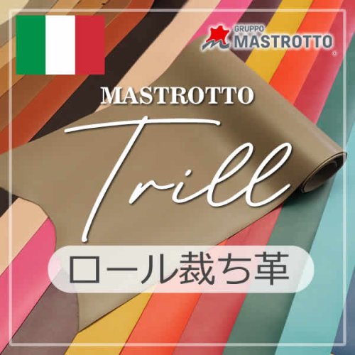 イタリア北部ヴェネツィアの西で革の街として知られるアルツィニャーノに所在する世界最大のタンナー「GRUPPO MASTROTTO」社製のスムースレザー「TRILL(トリル)」です。クロム鞣しによるソフトながらややハリのあるタッチとイタリアンレザーらしい鮮やかなカラーはシンナー等の溶剤不使用で撥水性もあり、高精度な色管理により色ブレの心配がないことも魅力です。表用革としてはもちろん、イタリアンレザーとしては低価格ですので財布やカードケースなど小物のライニングにもお勧めです。