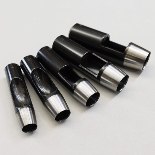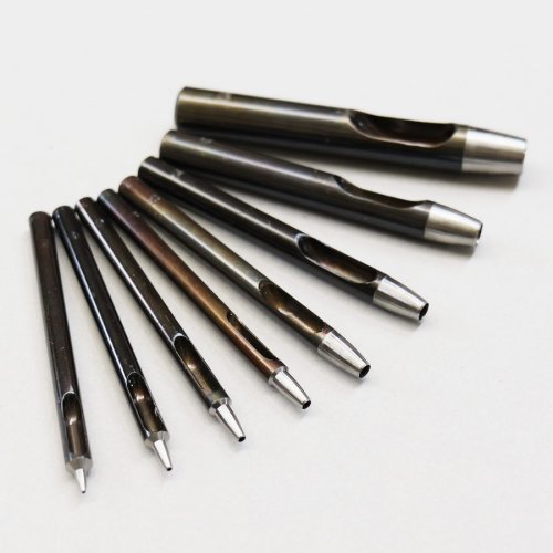 ホックボタン、カシメ、ハトメなどの下穴あけから丸抜き革の作成まで多用途なハトメ抜き(皮ポンチ)です。
