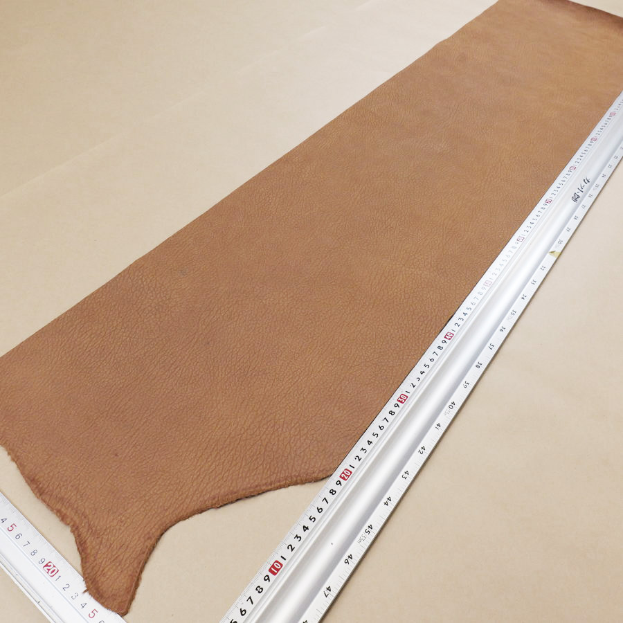この商品は全判革から30-40cm程度の一定幅で切り出したもので、表示サイズは内包する長方形の縦横寸法ですが、計測は弊社で行っておりますので若干の寸法誤差はご容赦下さい。