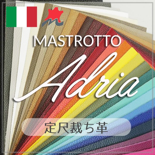 イタリア北部ヴェネツィアの西で革の街として知られるアルツィニャーノに所在する世界最大のタンナー「GRUPPO MASTROTTO」社製の「Adria(アドリア)」はミネラルタンニングならではのソフトなタッチとシュリンクによる安定度の高いシボが特徴で、イタリアンレザーらしい鮮やかなカラーはシンナー等の溶剤を使用せず撥水性もあり、高精度な色管理により色ブレの心配がなく、染色革のような色褪せや変色、日焼けもなく長期間鮮やかな色合いを維持することも魅力です。