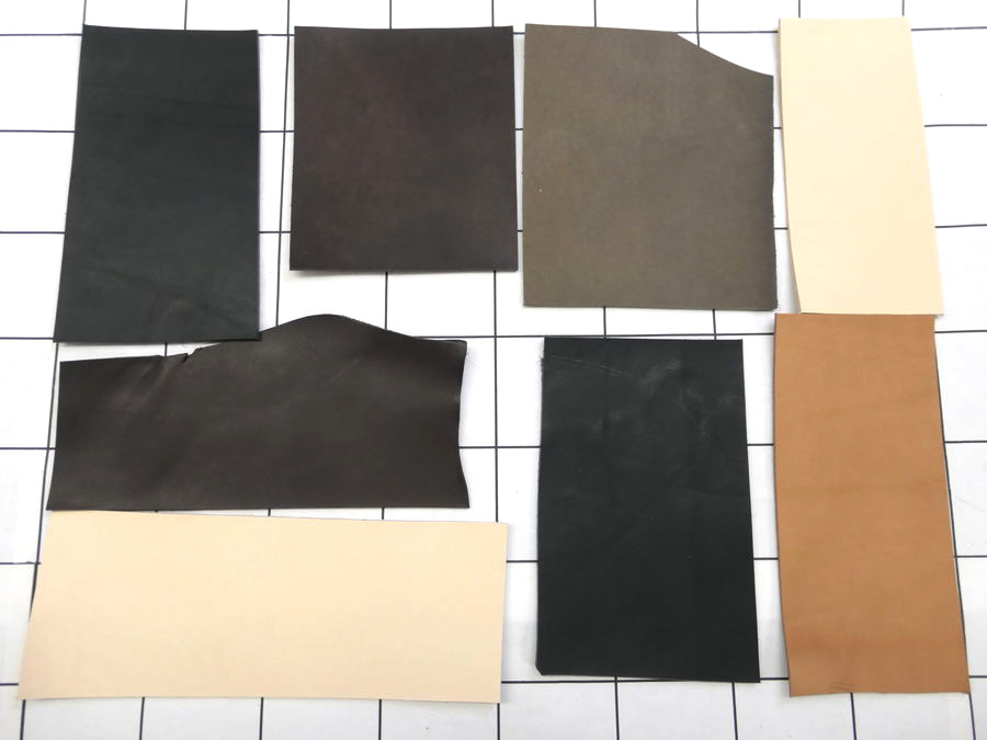 この素材は定尺裁ち革などを裁断した際に余剰となったハギレですので状態はさまざまで、それぞれ実際にお届けする現品の画像を掲載しておりますので画像にてご判断下さい。