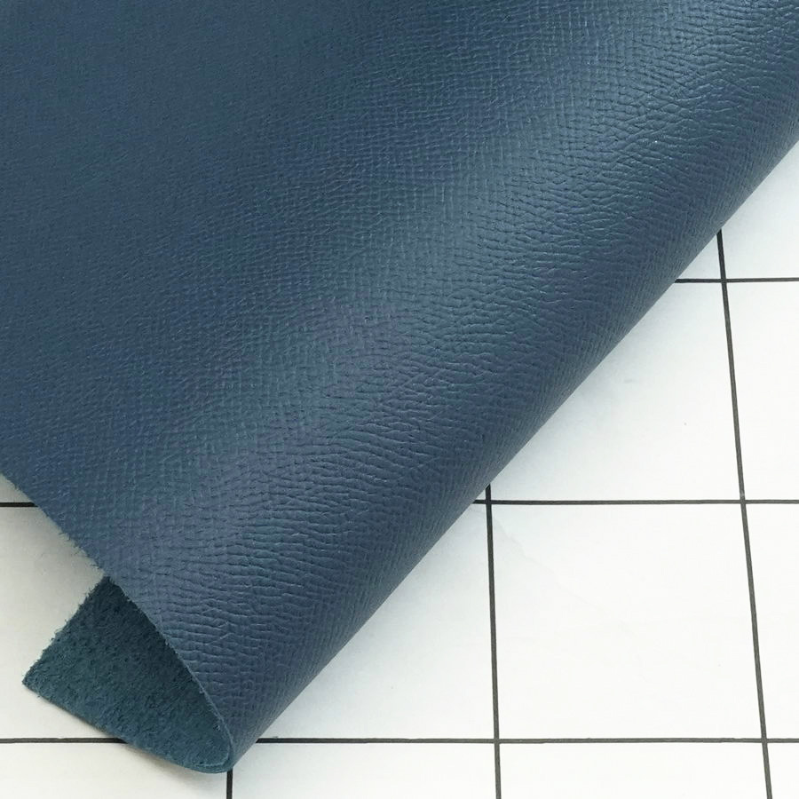 本商品「エプソン(特色)」はH社のアトリエでバッグなどのパーツ取り後に余剰となったハネモノを譲渡されたもので、「HAAS」「ROUX」「ANNONEY」「WEINHEIMER」などフランスの名だたるタンナーが製革を担っています。カラーはすべてH社によるオーダー色で各タンナーのレギュラー色にはない希少な非売色です。