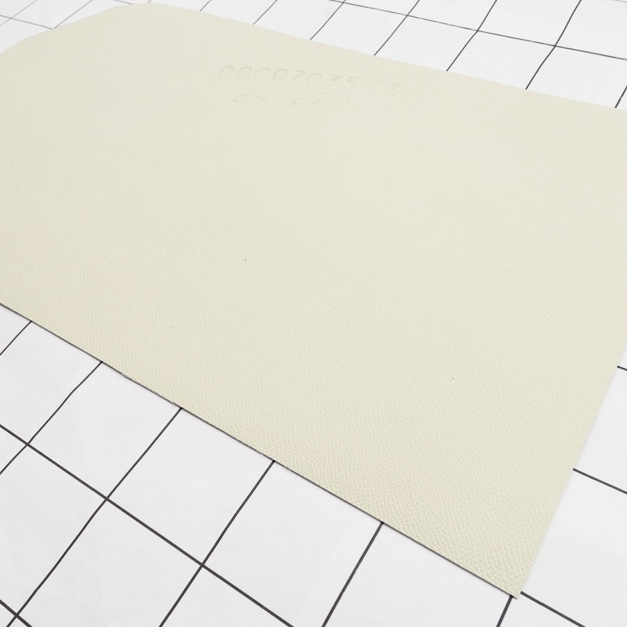 フランスで1803年創業のタンナー「ROUX」社と1842年創業の「HAAS」社で作られている型押しカーフです。 スーパーメゾンH社ではヴォーエプソンの名称で採用され、カーフならではの緻密な繊維とハリのあるフォーマルな型押しが特徴です。