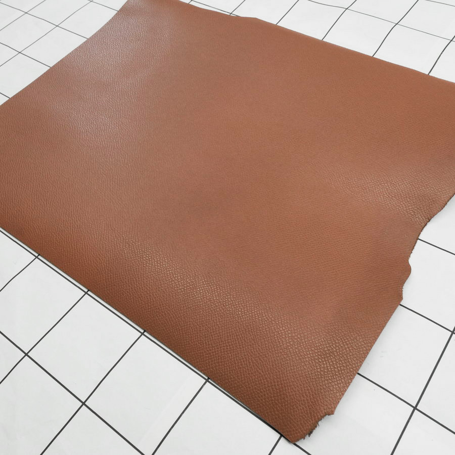 フランスで1803年創業のタンナー「ROUX」社と1842年創業の「HAAS」社で作られている型押しカーフです。 スーパーメゾンH社ではヴォーエプソンの名称で採用され、カーフならではの緻密な繊維とハリのあるフォーマルな型押しが特徴です。
