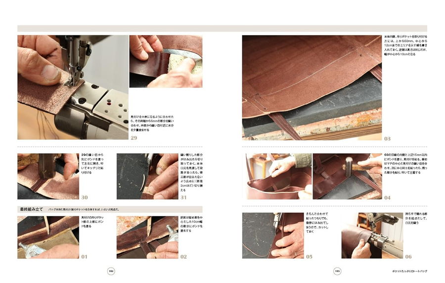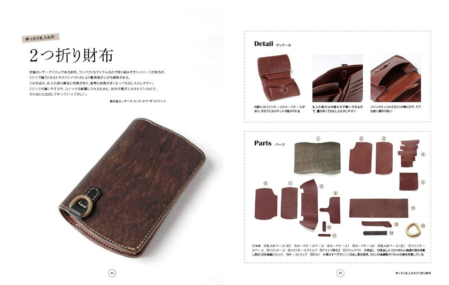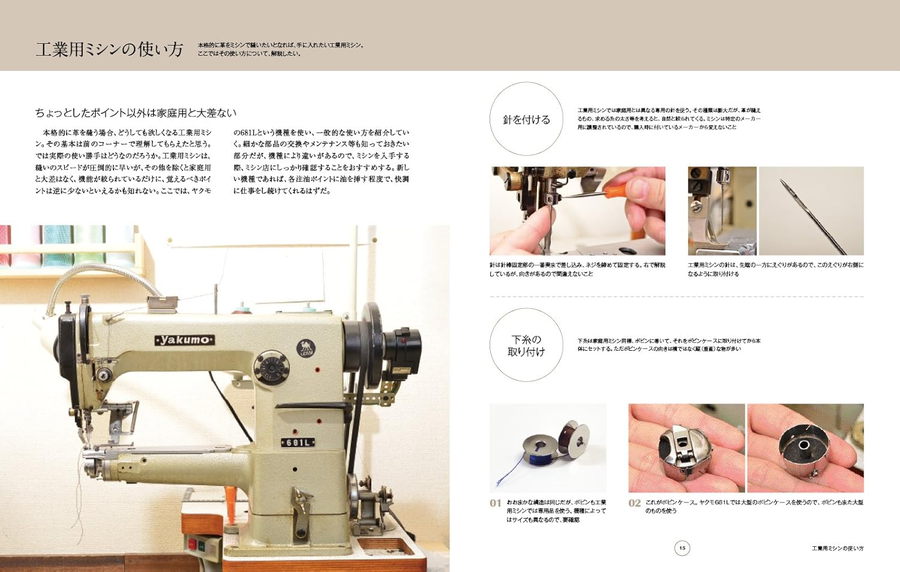 製作時間を短縮し、作品数向上に役立つミシン。品質はもちろん、量産性を重視するプロの多くは、ミシンを使っています。本書はそんなミシンを使ったレザークラフト作品の作り方を分かりやすく解説しています。本書は特に、少々敷居は高くなりますが、よりレザークラフトに向いている工業用ミシンに焦点を当て、その基本から使い方を解説しつつ、実践的なアイテム製作解説を通じて、ミシン仕立てのレザークラフトが学べます。プロならではのテクニックも掲載されていますので、必ずやあなたの技術を向上させてくれることでしょう。