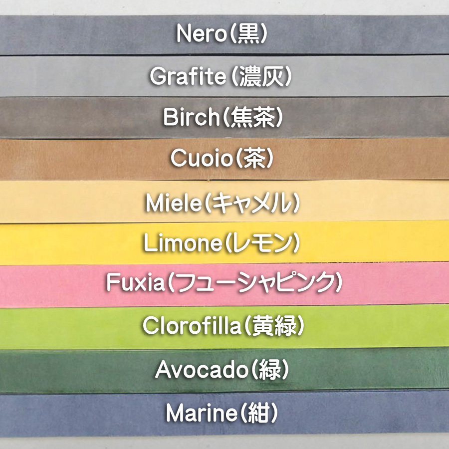 画像の色味は実際の色を完全に再現できていないほか、ヌメ革では染色の色味や艶感、堅さ、シボの出方などがロットごとに変わる「ロットブレ」があり、掲載画像は現行ロットと異なる場合があるほか、他カテゴリの同色革は多くの場合ロットが異なりますので色味は一致しないものとご理解下さい。