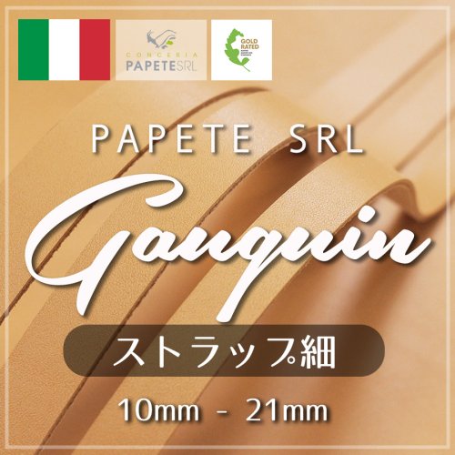 イタリア・トスカーナ州サンタクローチェ地区に所在するConceria Papete SRL(パペテ)社はハイブランド向けのフルベジタブルレザーを製造するタンナーとして知られ、この「Gaouguin(ゴーギャン)」は「LV」製品のストラップや縁部分に使われているもので、肌理の細かいサラリとした肌は水分を吸収しにくい加工も施され、フルベジタブルレザーながら水染みができにくく仕上げられています。