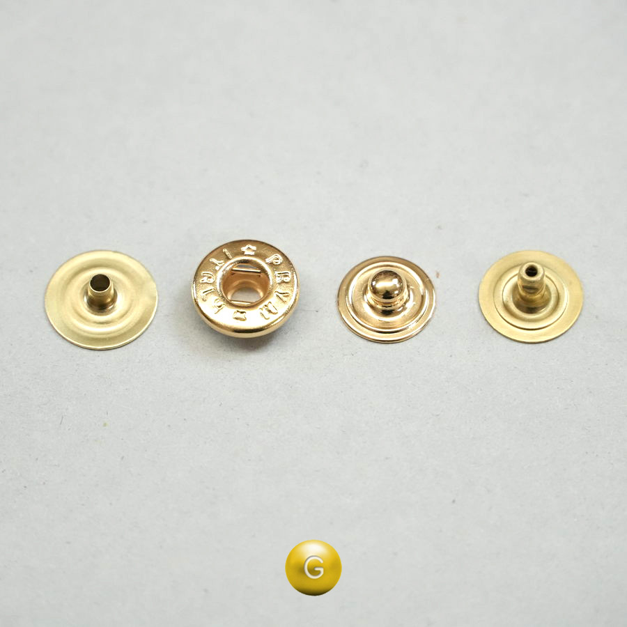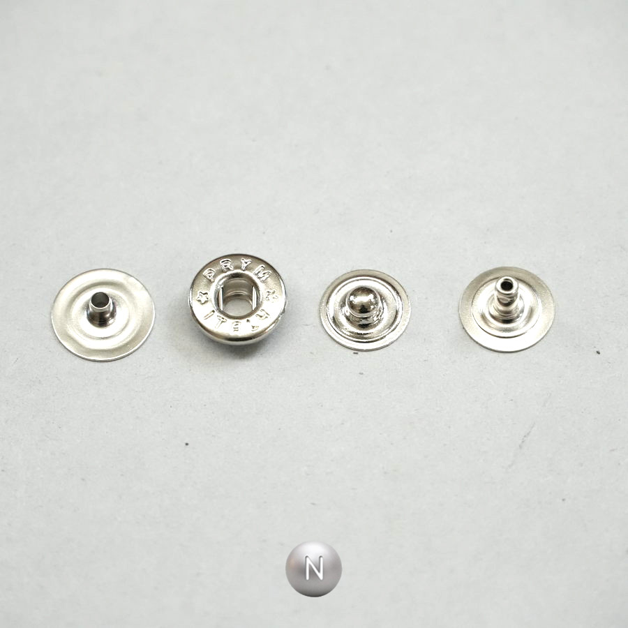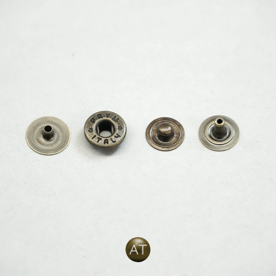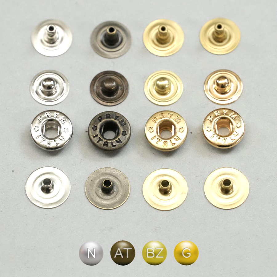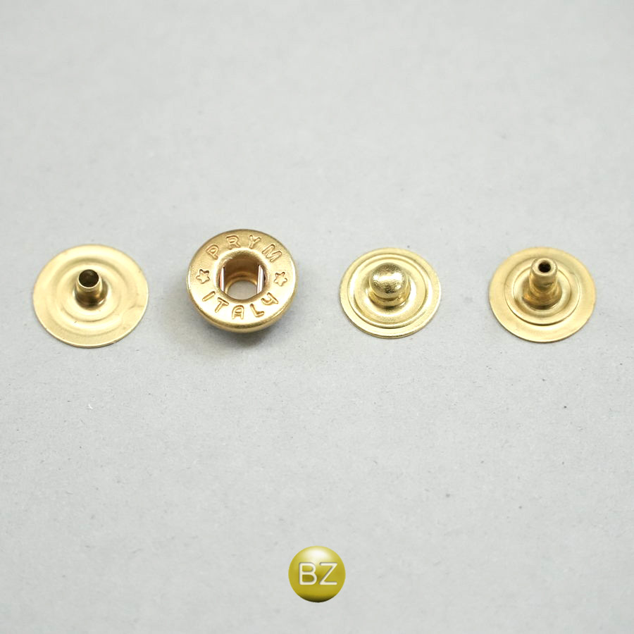 ヨーロッパのスーパーメゾンでも採用されているイタリアPRYM社のバネホック(Spring Snap)、バネパーツには「PRYM ITARY」の刻印が入り、ダボと足パーツは一般的なバネホック同様のプレスタイプです。