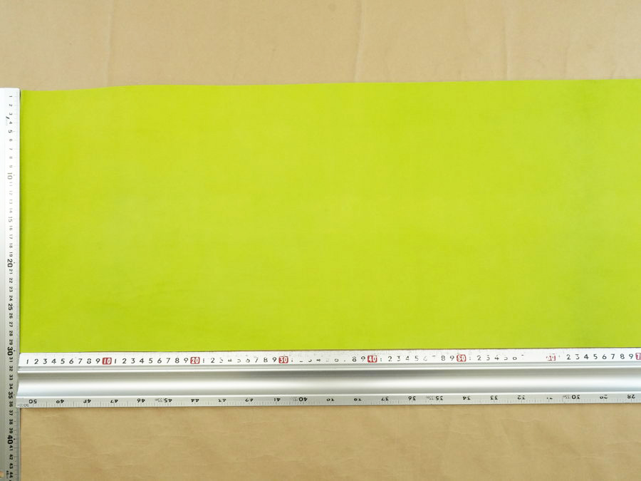イタリア植物タンニンなめし協会加盟タンナー「TEMPESTI(テンペスティ)」社製のフルベジタブルレザーです。肌理が細かい北欧産の成牛原皮を用いて植物タンニンで丁寧に鞣され、適度な油脂分を加えることでヌメ革本来のコシがしっかり残されていますので芯材を用いない製品作りにも適しています。特筆点はその鮮やかな色合いで、革そのものの表情を隠さない染料染色だけでこの高彩度な色合いが出せるのは同社ならではの技術として高い評価を得ています。 新品時は艶が抑えられていますのでエイジングによる変化は大きく、濃色化とともに深みのある艶肌への変化をお楽しみ頂けます。