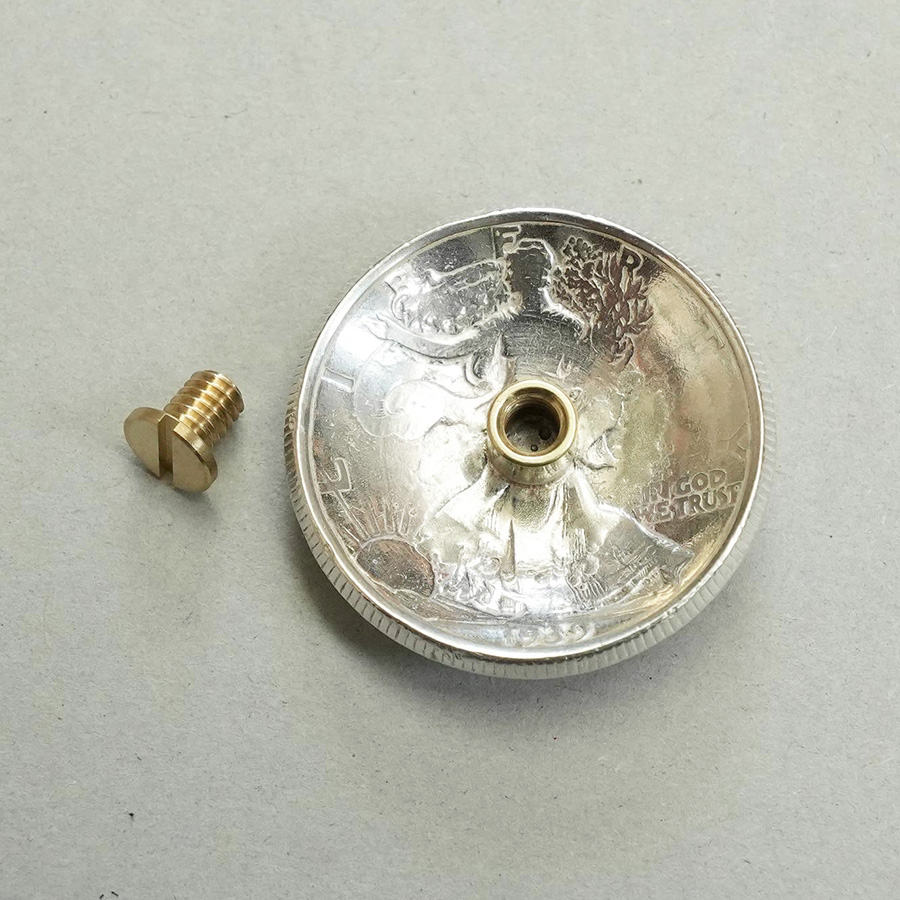 ・本物の旧貨を手作業にて半球状に加工し、表面は鏡面艶研磨仕上げしています。