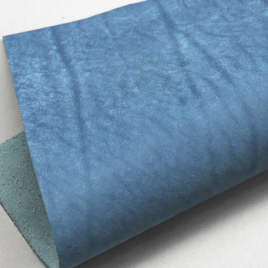イタリア植物タンニンなめし革協会認定のタンナー「Il Ponte(イル・ポンテ)」社製のフルベジタブルバフィングレザーです。適度な油脂分によりヌメ革らしいコシが与えられ、バフでまだらに銀擦りされた表情豊かな銀面は柔らかな色合いを演出するだけでなく製作時や使用時も傷が目立ちにくい利点があり、艶上がりエイジングもお楽しみ頂けます。