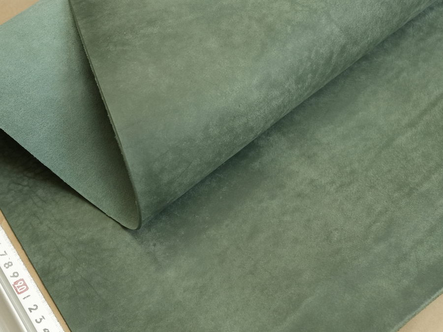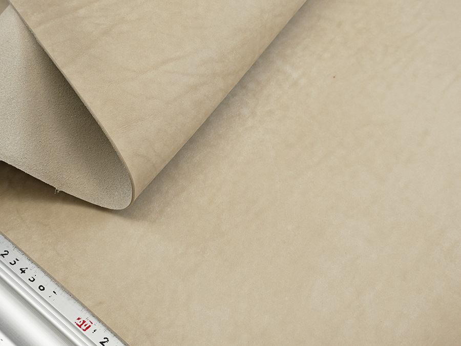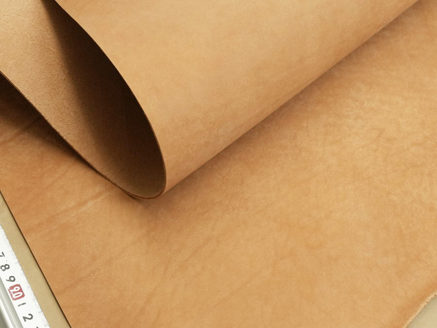 イタリア植物タンニンなめし革協会認定のタンナー「Il Ponte(イル・ポンテ)」社製のフルベジタブルバフィングレザーです。適度な油脂分によりヌメ革らしいコシが与えられ、バフでまだらに銀擦りされた表情豊かな銀面は柔らかな色合いを演出するだけでなく製作時や使用時も傷が目立ちにくい利点があり、艶上がりエイジングもお楽しみ頂けます。
