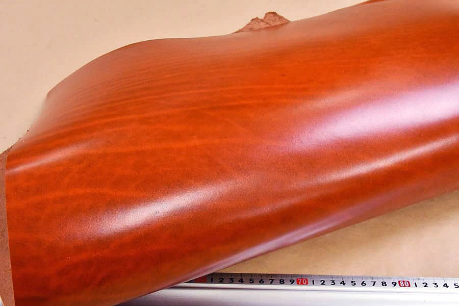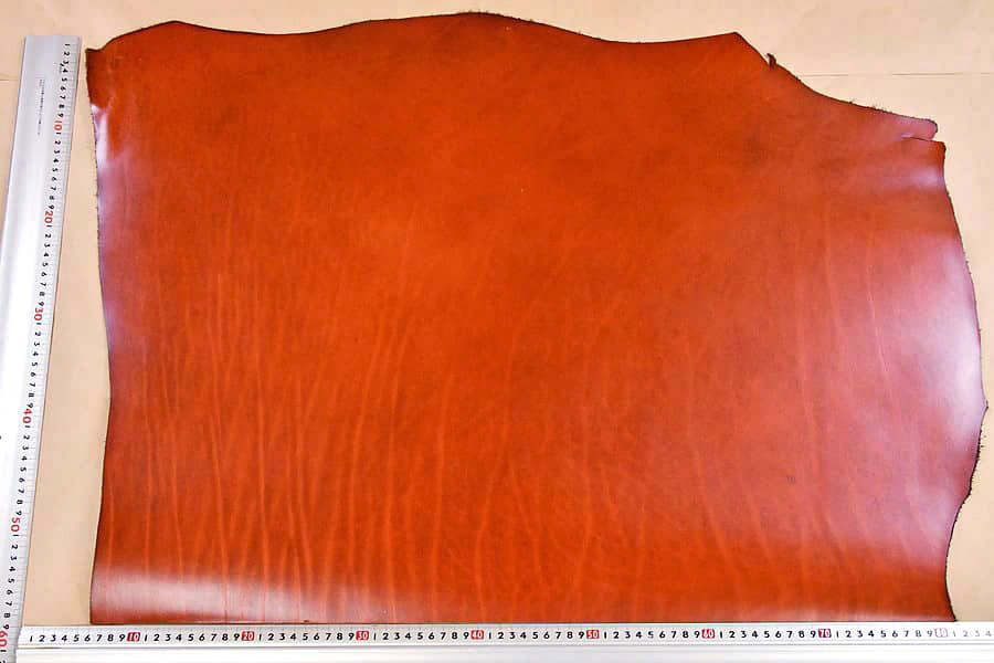 この商品は全判革(ダブルショルダー)を背筋に並行に面積比1:1で2分割カットした片側(左または右)を販売しています。