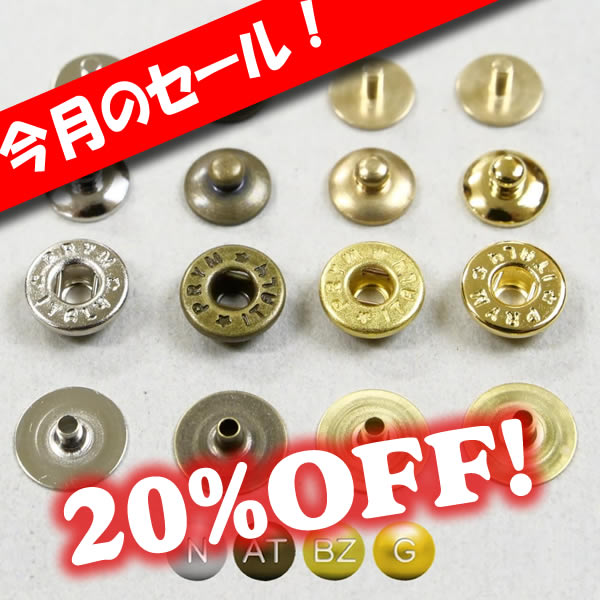 ヨーロッパのスーパーメゾンでも採用されているイタリアPRYM社のバネホック(Spring Snap)、バネパーツには「PRYM ITARY」の刻印が入り、ダボと足パーツが高級感のある挽物になっています。
