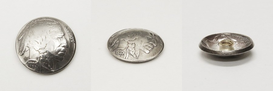 コンチョは新品ですが、材料となるコインは当時実際に流通したものですので微細な傷や柄擦れがあります。