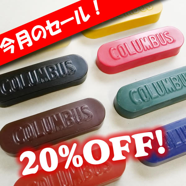 ヌメ革のコバに艶と防水性を与えるコロンブス社製のコバ仕上げ専用ワックスです。本品の先端をアルコールランプ等で軽く溶かしてコバに塗り込み、電気アイロンごて等で浸透させ、コバ磨きクロス等で磨くことで艶深い平滑なコバに仕上げることができます。